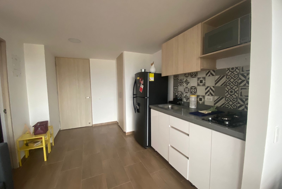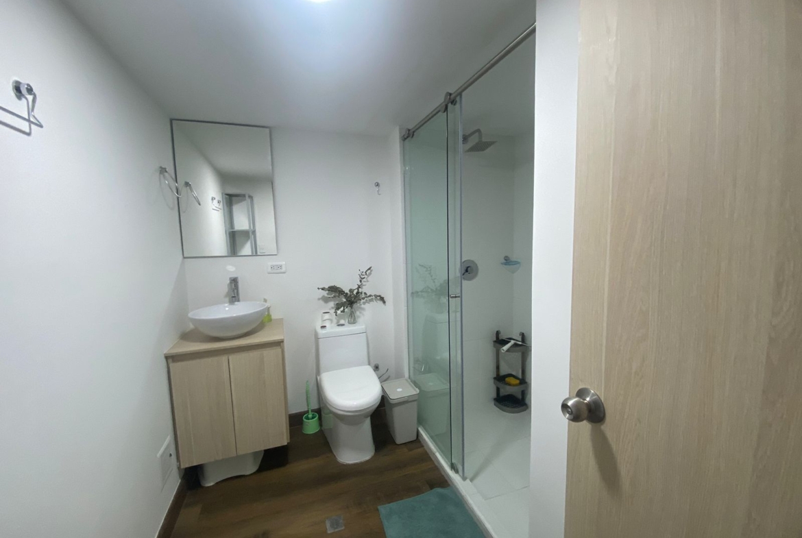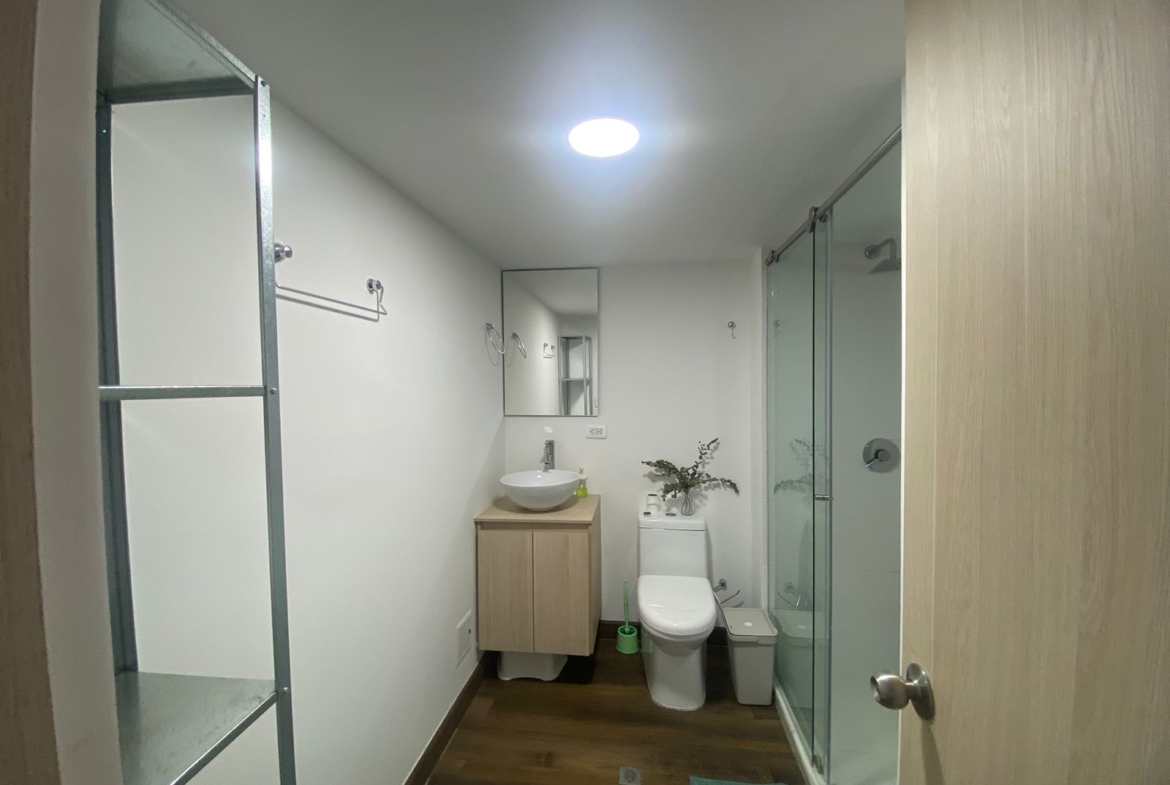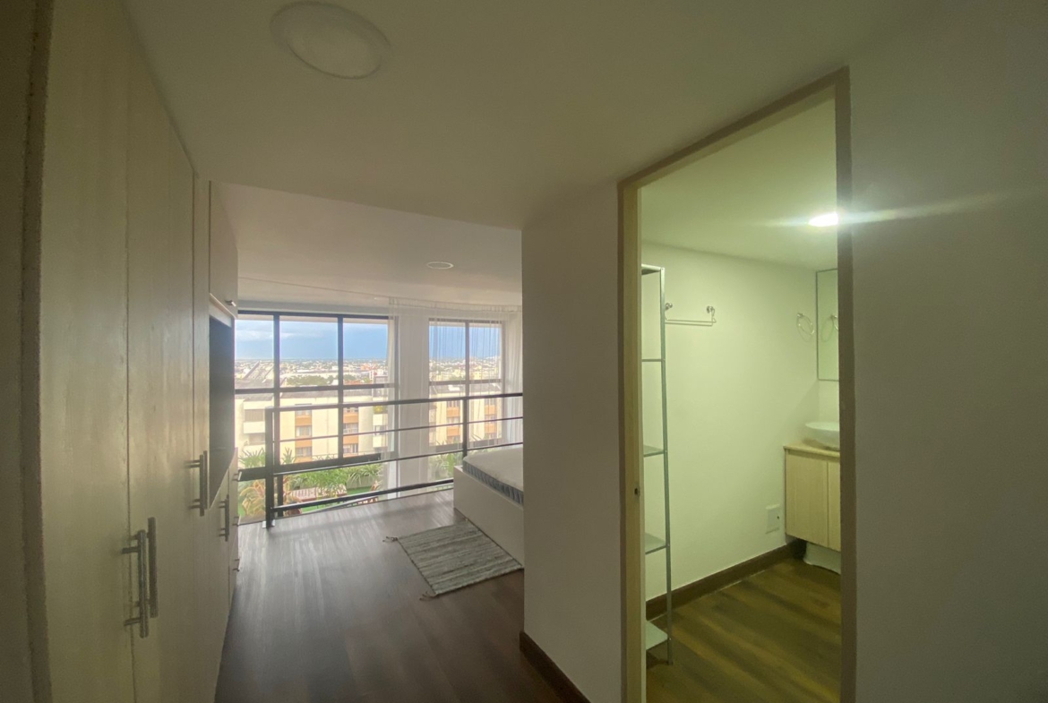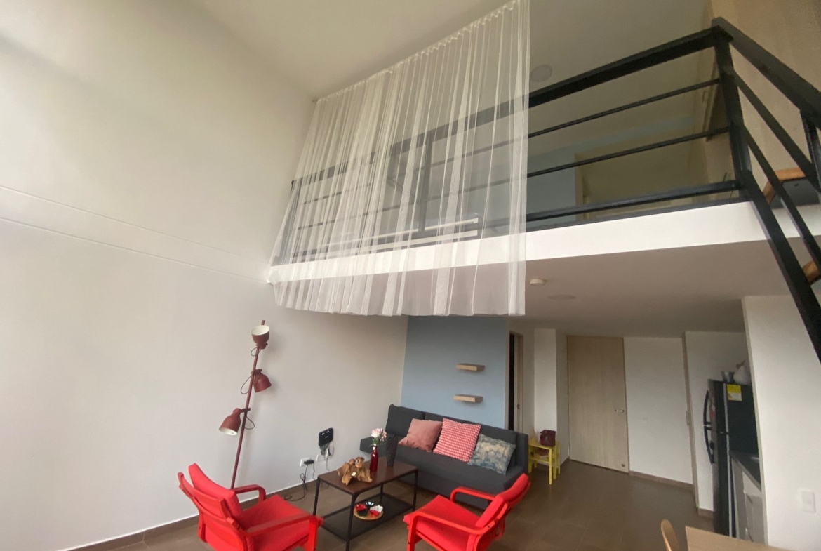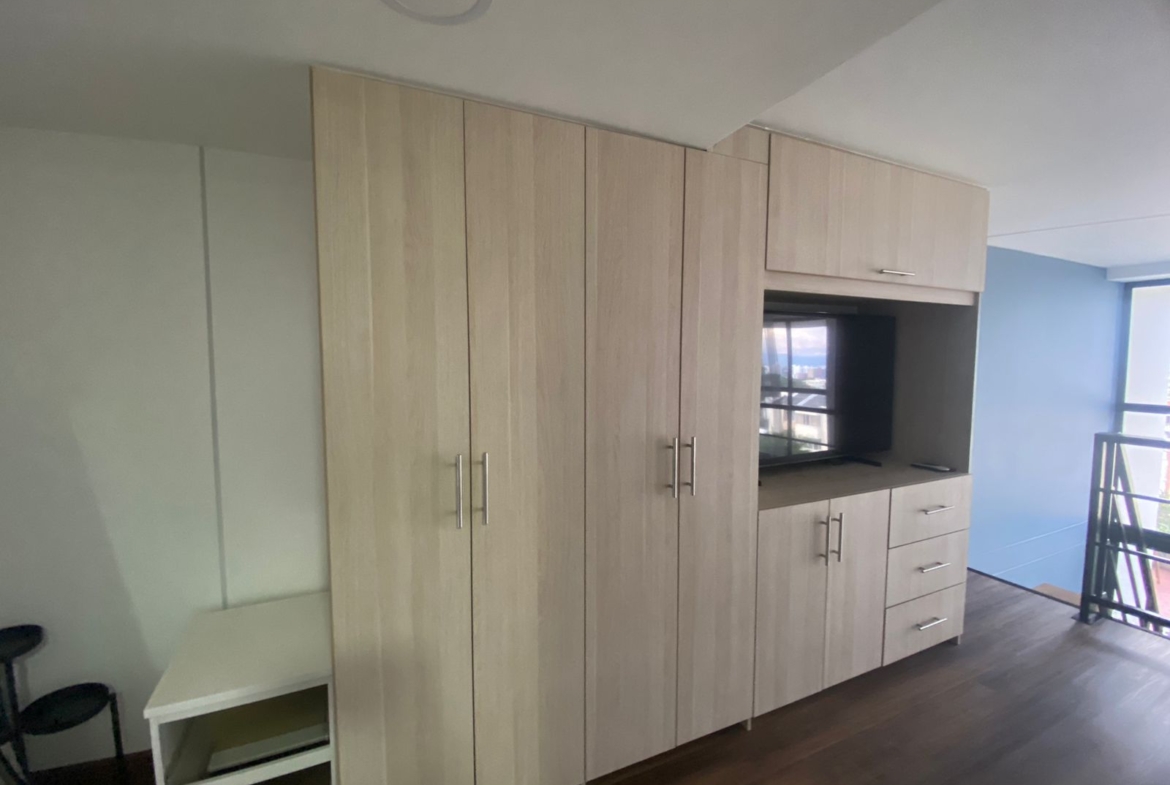 Aparta estudio en HABITARE CRISTALES, ubicado en el oeste de la ciudad, en el 1° piso del Edificio, con terraza privada de 6.68 M2 y espacio de salón comedor a doble altura, parqueadero privado de 12,5 m² (semisótano – elevador), cuenta con vista panorámica de la ciudad. Aire acondicionado instalado. Puerta tipo hotel anti ruido y anti humo, con cerradura digital. Ventanas termoacústicas con angeo. Cocina integral. Baño en primer nivel como social y en el 2 nivel alcoba abierta y un baño completo. Sistema de ósmosis para agua potable. Calentador y clóset incluidos.