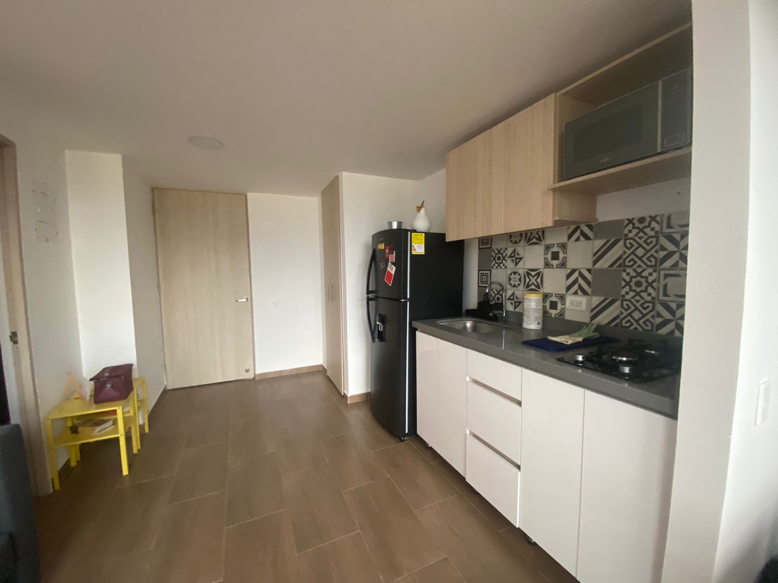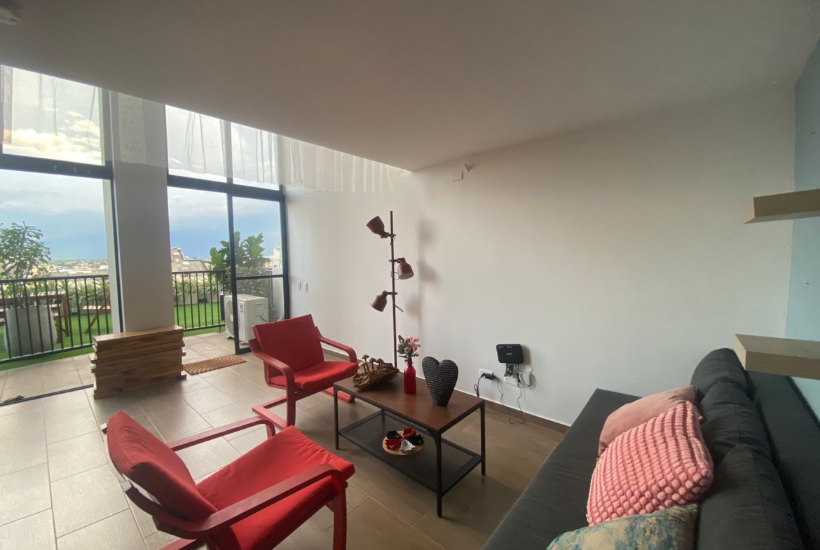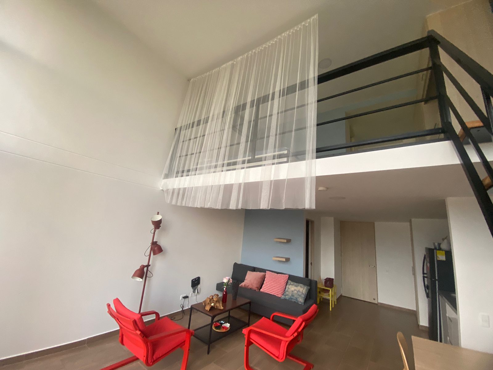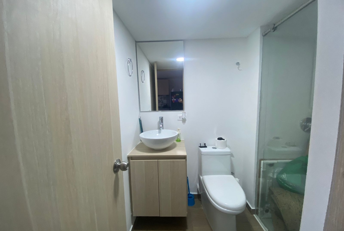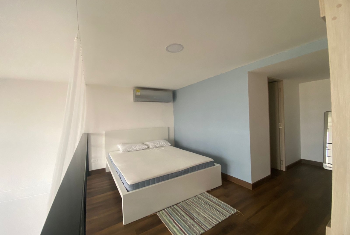 Aparta estudio en HABITARE CRISTALES, ubicado en el oeste de la ciudad, en el 1° piso del Edificio, con terraza privada de 6.68 M2 y espacio de salón comedor a doble altura, parqueadero privado de 12,5 m² (semisótano – elevador), cuenta con vista panorámica de la ciudad. Aire acondicionado instalado. Puerta tipo hotel anti ruido y anti humo, con cerradura digital. Ventanas termoacústicas con angeo. Cocina integral. Baño en primer nivel como social y en el 2 nivel alcoba abierta y un baño completo. Sistema de ósmosis para agua potable. Calentador y clóset incluidos.