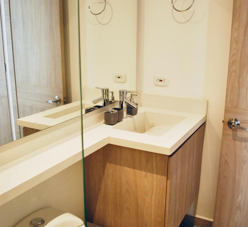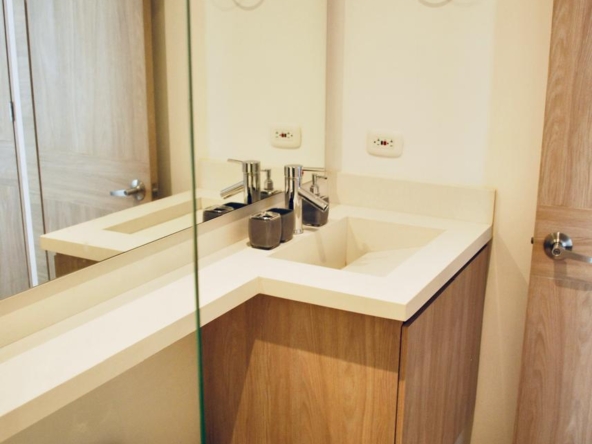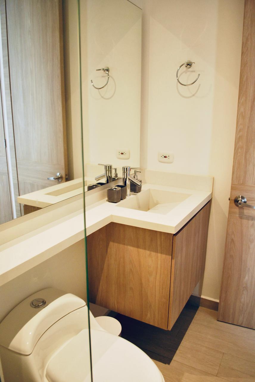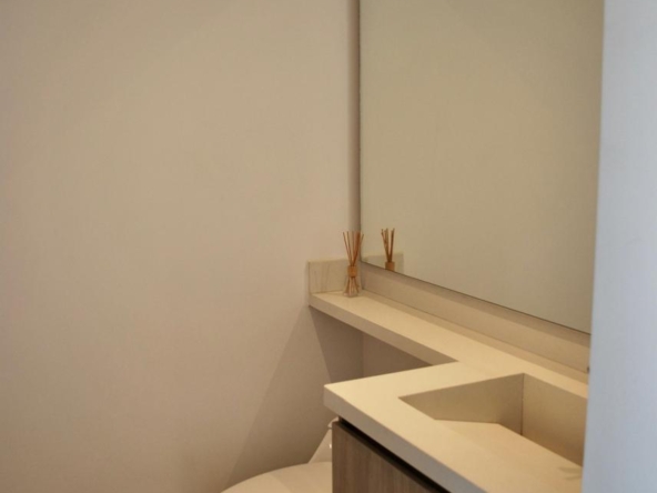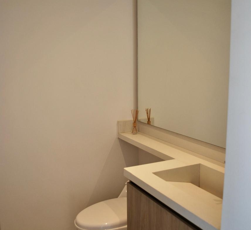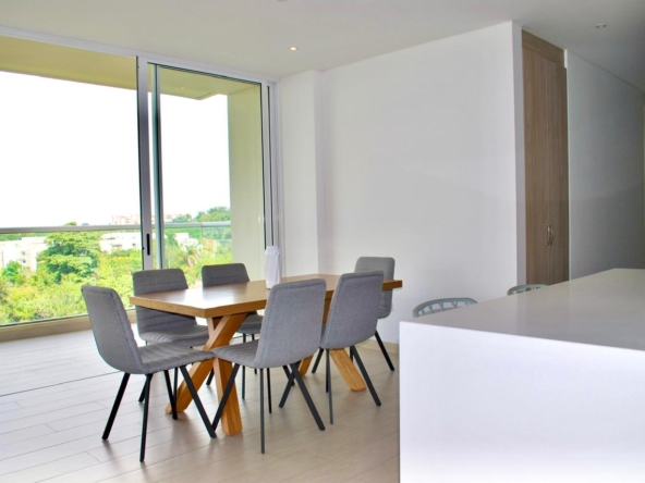 Presenta la siguiente distribución: sala, comedor, balcón de 15 M2, estudio, cocina integral, Dos habitaciones cada una con su baño y un baño social y una terraza lateral de 23.50 M2.