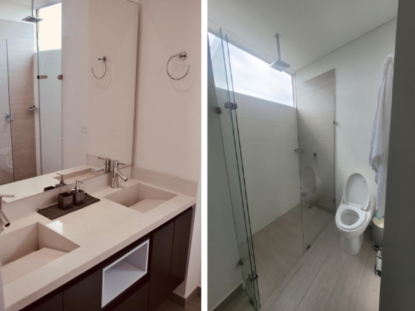 Cuenta con dos (2) parqueaderos en línea en el sótano y parqueadero de visitantes al interior del conjunto. El complejo cuenta con piscina, turco, gimnasio, salón de eventos, terraza 360 con salón social y salón para Yoga, zona de juegos infantiles y zonas comunes.