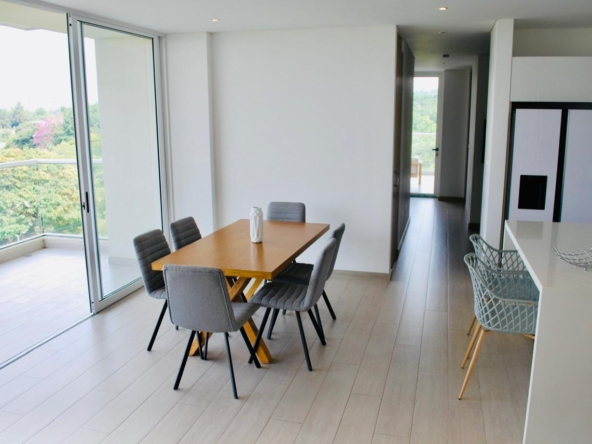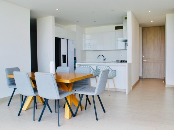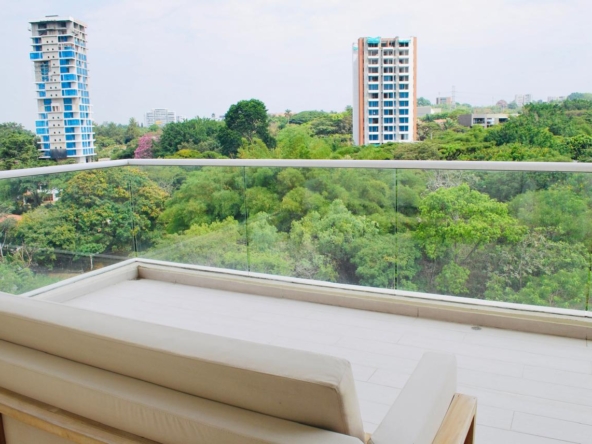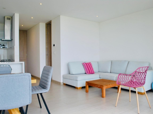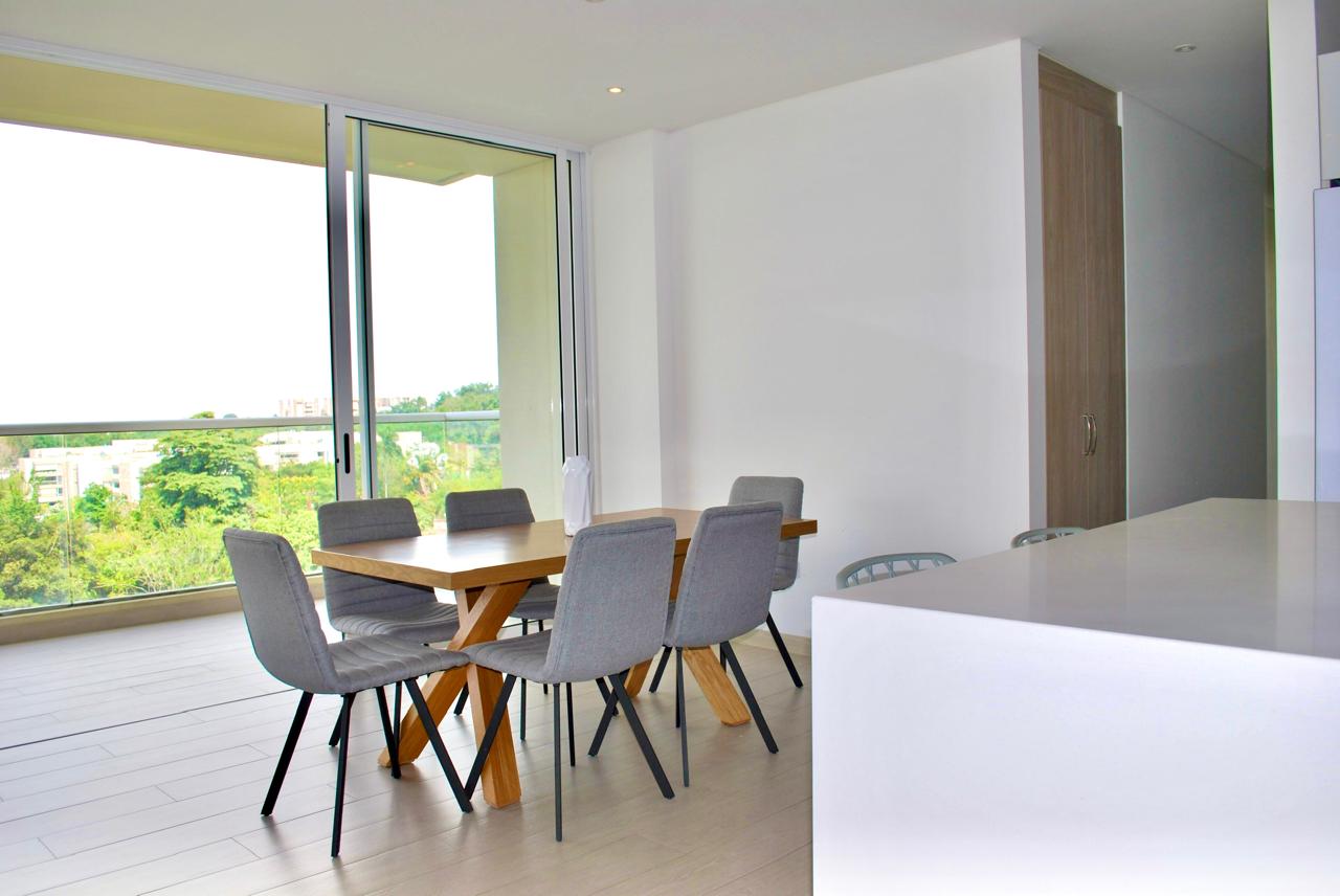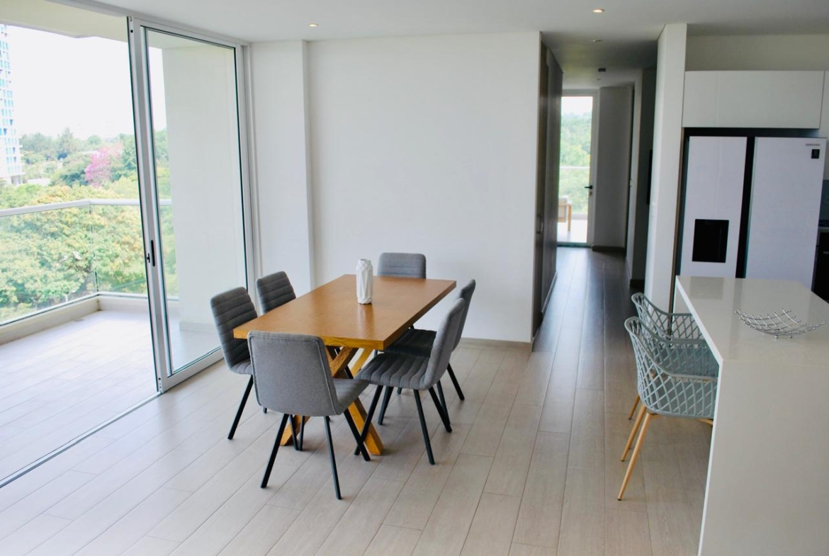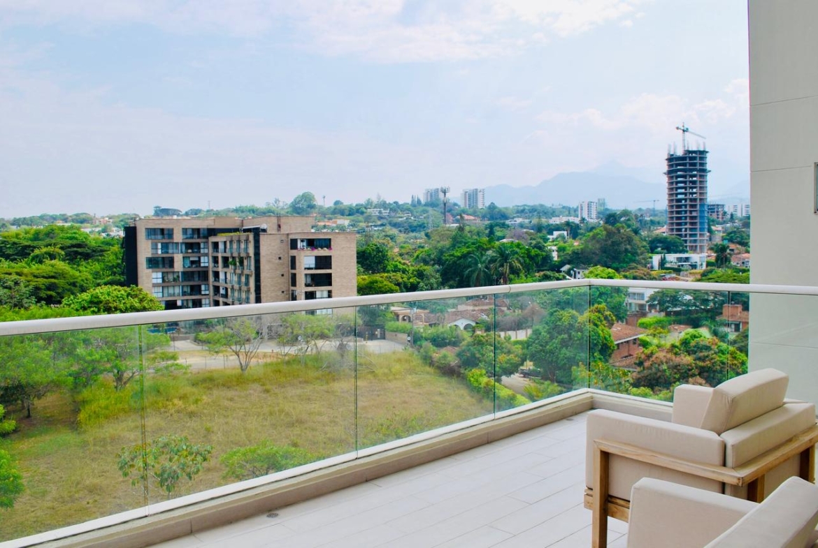 Es un apartamento amplio, abierto hacia las zonas sociales, en una zona residencial tranquila, rodeado de iluminación natural, con una reserva natural en su parte posterior, lo que garantiza no tener vecinos y nunca perder la vista, con una increíble vista hacia el sur este y los cerros de Cali, orientación sol de la mañana.