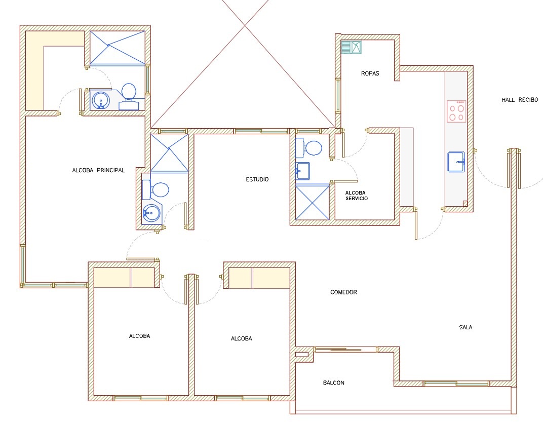 Sala Comedor amplia, con balcon, cocina integral lineal con estufa integrada y mueble inferior y superior, zona de ropas y oficios y alcoba de servicio con su respectivo baño, estudio o estar de televisión, dos alcobas, cada una con su respectivo closet, baño de alcobas y social y la alcoba principal con vestier y baño.