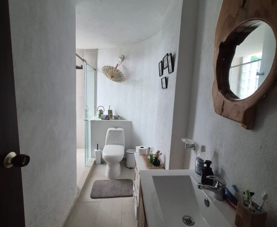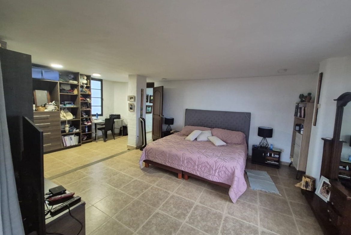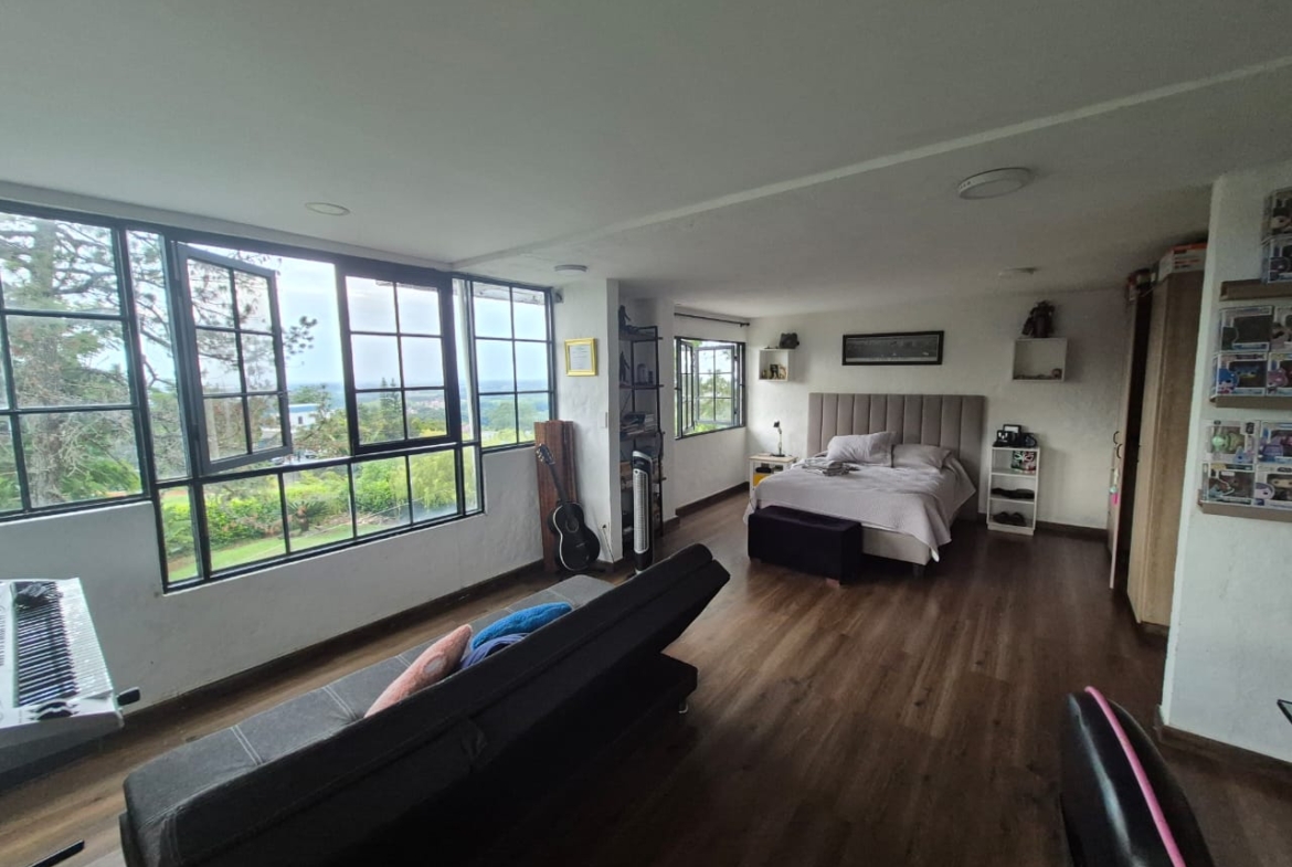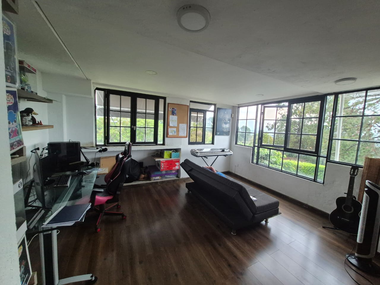 En el segundo nivel se ubica un cuarto bastante amplio de forma alargada, contiguo esta la alcoba principal con un closet abierto y una terraza lateral con vista sobre el valle, un baño para los dos cuartos suficientemente amplio y cómodo.