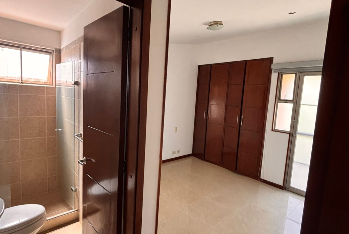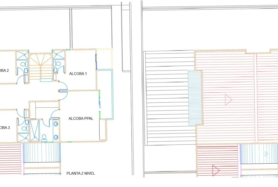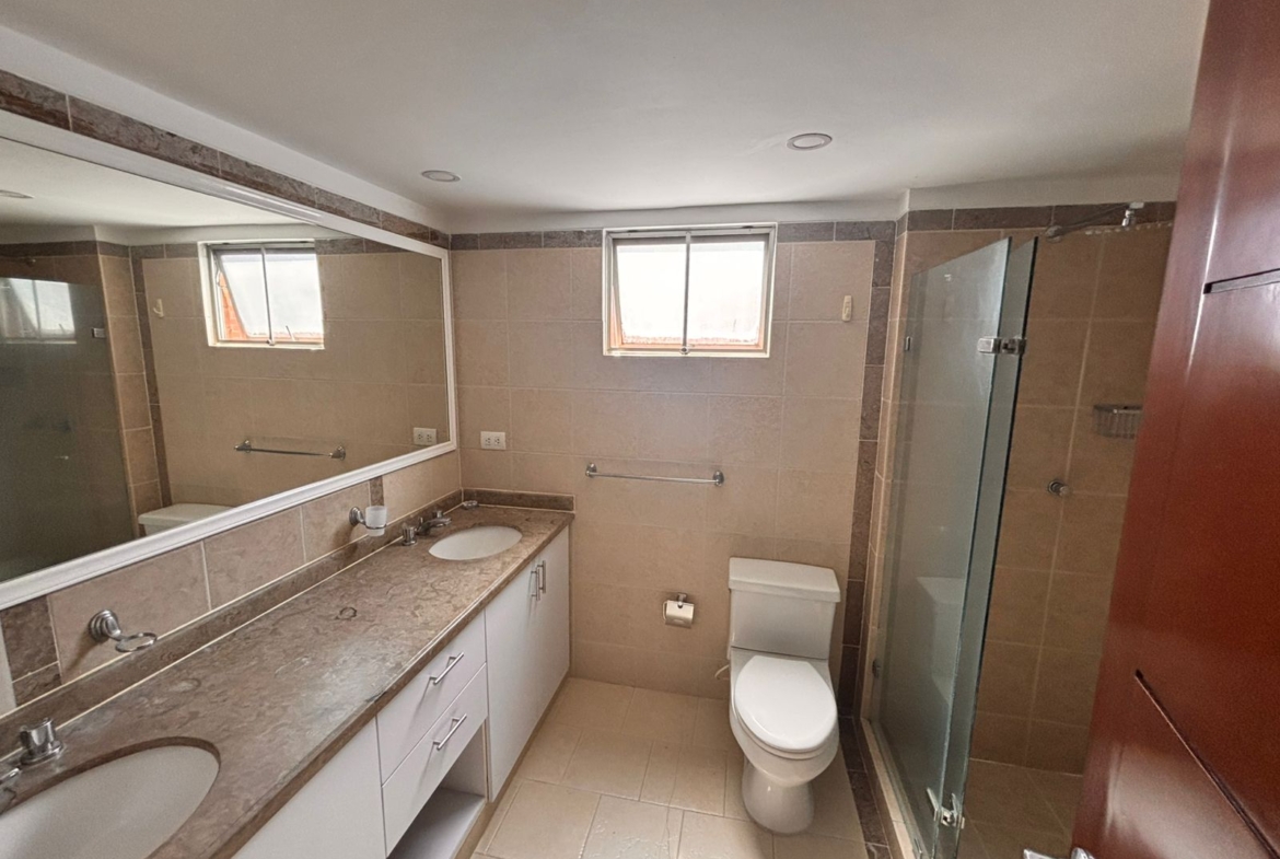 Segundo Nivel: Con un área de 119 M2, alcoba Principal. con vestier, baño y ducha, balcón y AA; dos cuartos auxiliares cada uno con baño y ducha y balcón y un cuarto huéspedes con AA con baño y ducha.