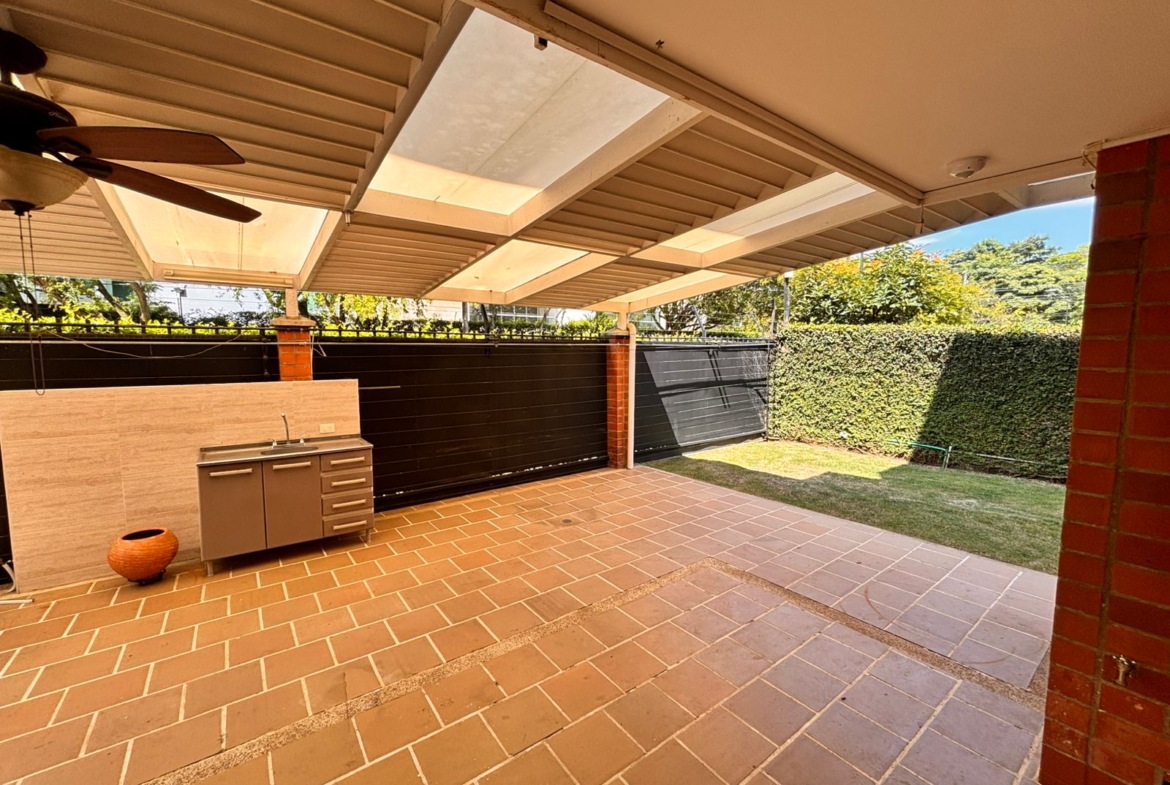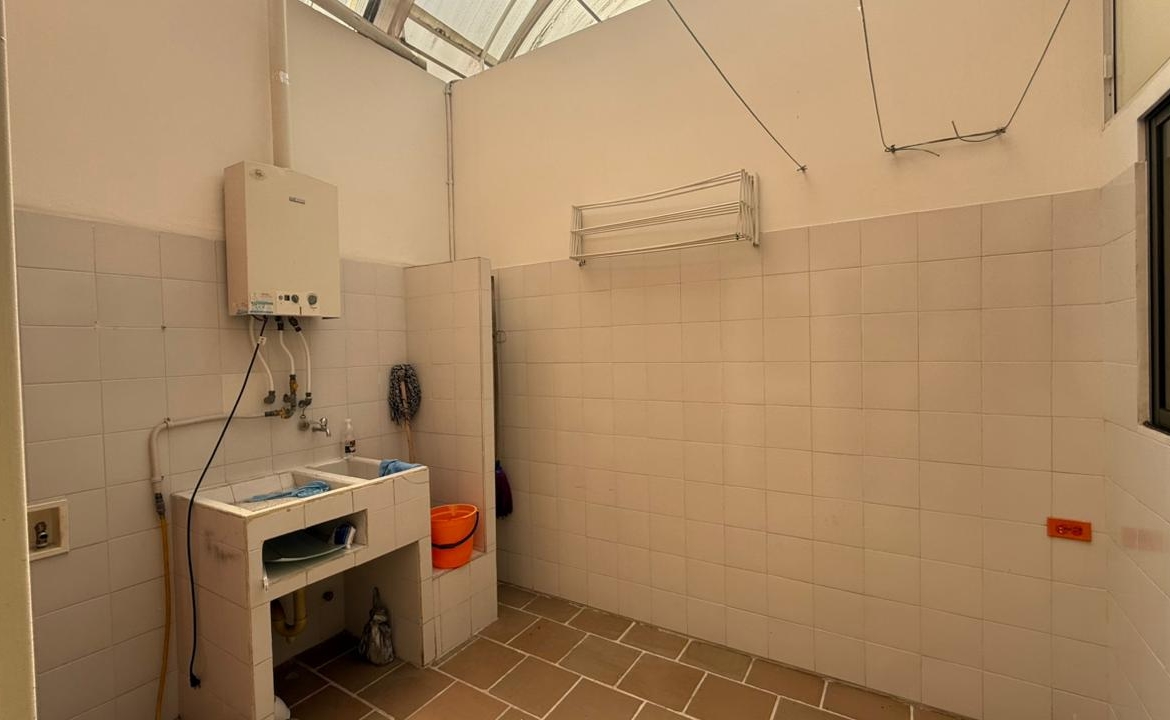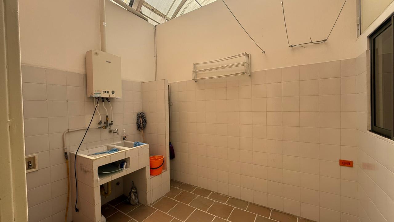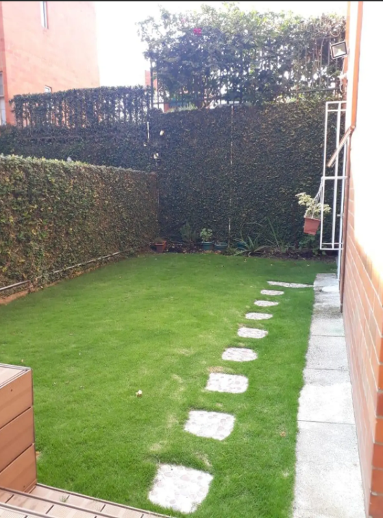 Semisótano con un área de 82 M2, como zona social, sala TV con AA, dos cuartos, baño social, bar, terraza cubierta, zona verde, turco.