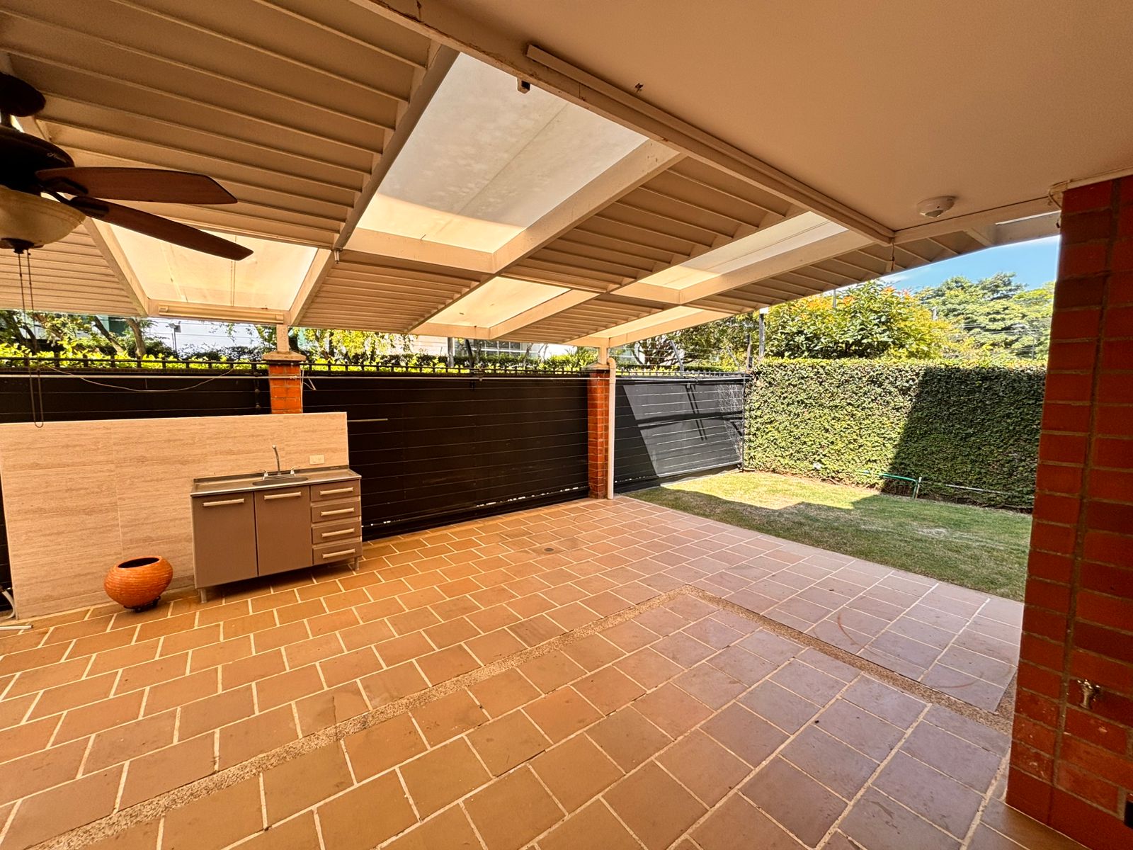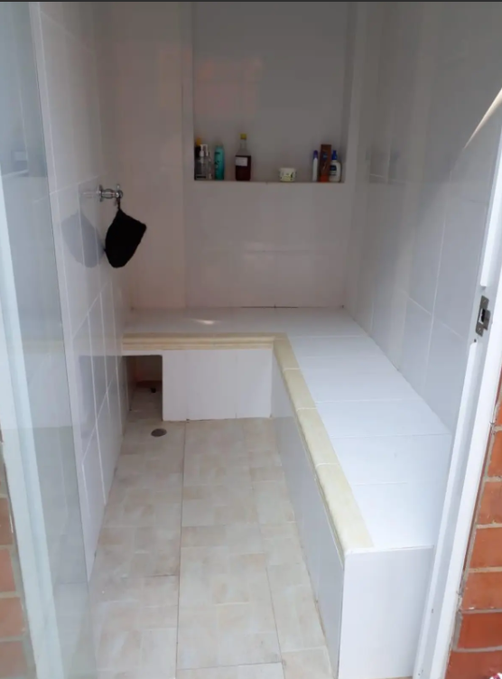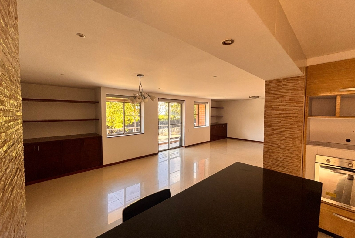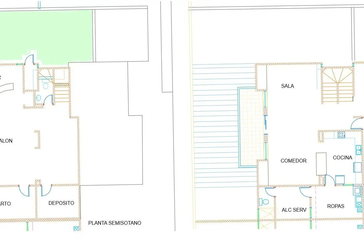 Semisótano con un área de 82 M2, como zona social, sala TV con AA, dos cuartos, baño social, bar, terraza cubierta, zona verde, turco.