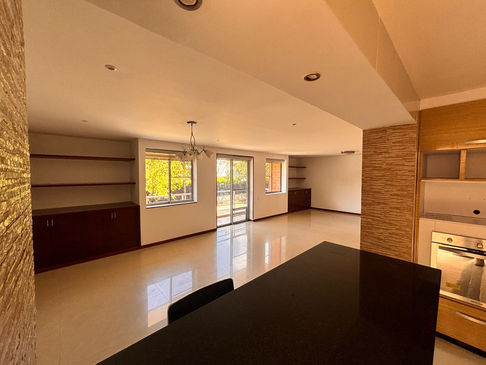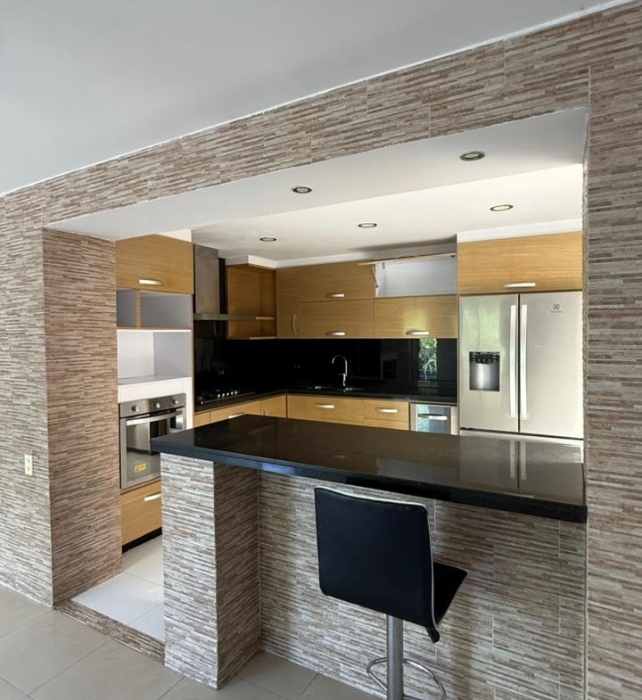 Primer Nivel: con acceso directo del exterior con un área de 138 M2 que funciona como sala de recibo, salón comedor amplio con balcón, cocina abierta, zona de ropas y oficios, cuarto servicio con baño y ducha.