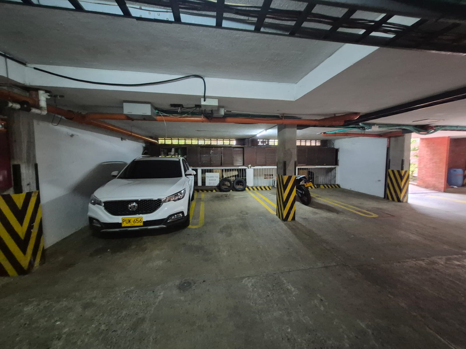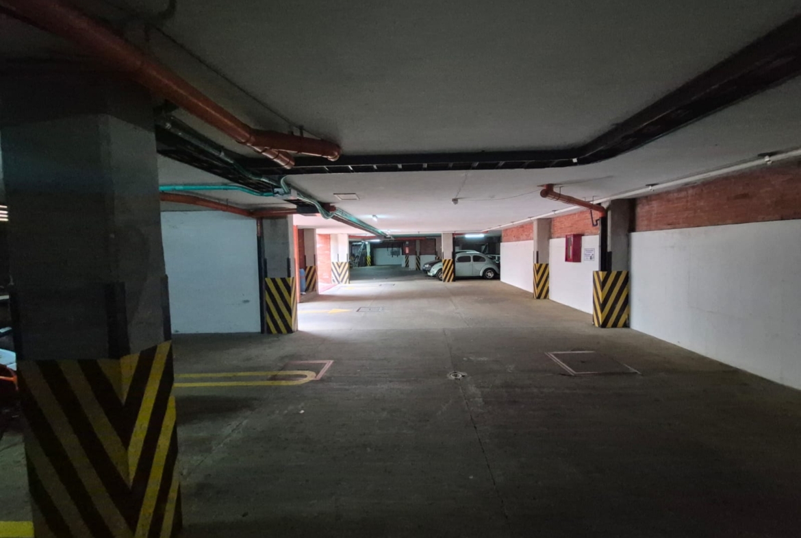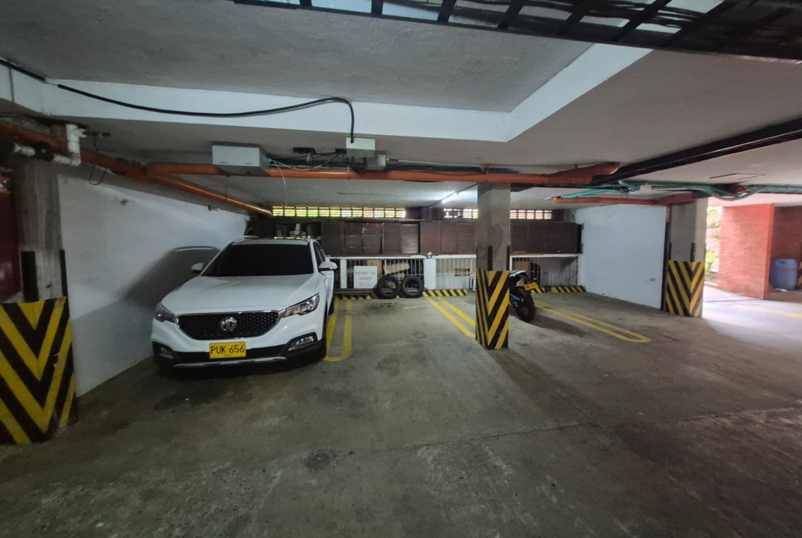 Se tiene dos parqueaderos, uno sobre plataforma y el otro en semisotano cubierto, junto con un deposito y mueble con espacio de almacenamiento.